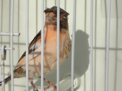 1.º - Colocar os poleiros numa posição mais baixa na gaiola e tapar a parte inferior da gaiola. O objectivo é o canário esticar-se para espreitar para fora.