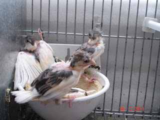 Os filhotes tiveram um desenvolvimento normal, aos 7 dias anilhei-os, aos 20 dias saíram do ninho e aos 30 dias já comiam.